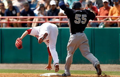 Wang has hurt himself twice & both times it involved running but did you all see the way he managed to brush firstbase with his toe as he was falling. It's a shame he was hurt but that was a really good play (except for the stumbling and falling and hurting himself).